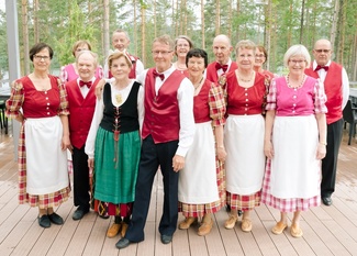 Vapunaaton tanssiorkesteri viihdyttämässä tanssijoita.