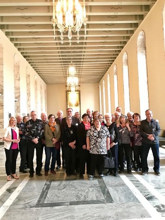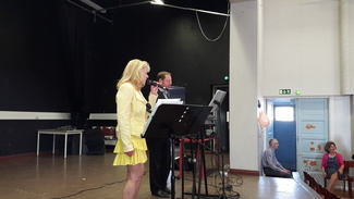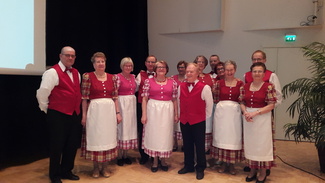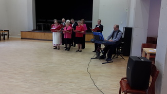 Lauluryhmä esiiintymässä Äitien päivä juhlassa.